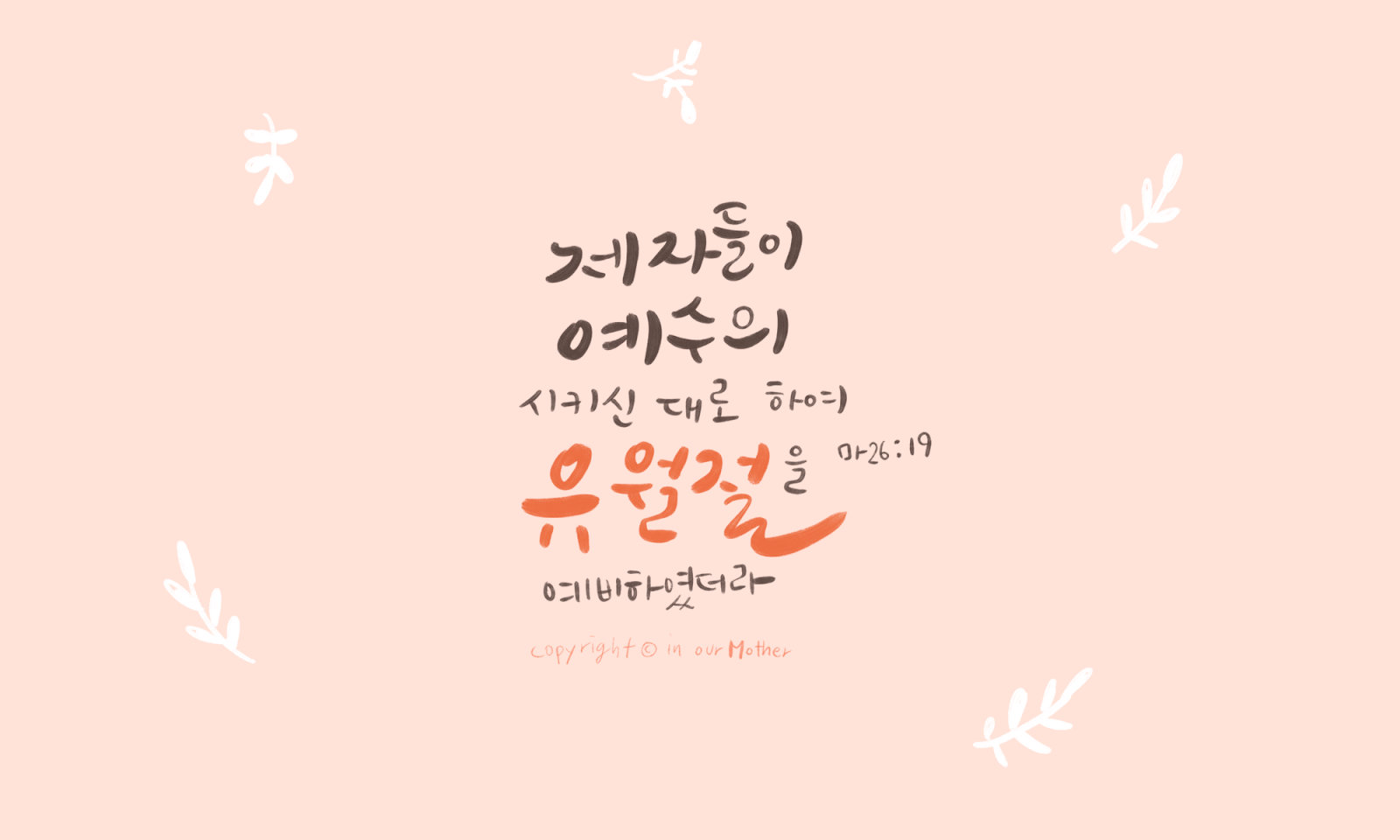 시대마다 유월절을 허락하신 분은 하나님인만큼 그 하나님의 명령 온전히 순종해서 약속한 그 곳에 넉넉히 들어가는 우리가 되자. 사망이 없는 영원한 행복만이 존재하는 천국이 우리 눈앞에 다가 왔으니 유월절로 준비하는 지혜로운 우리되자.
